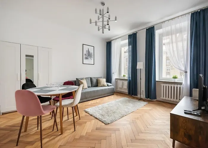 Das Apartment liegt im Stadtteil Wola von Warschau. Warschauer Königsschloss ist in ungefähr 5 Autominuten Entfernung von diesem 34 m² großen Apartment gelegen. Außerdem ist Einkaufszentrum Złote Tarasy in 7 Minuten zu Fuß zu erreichen.